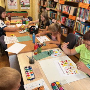 Zapraszamy dzieci na letnie zajęcia w bibliotece – warsztaty plastyczne i spotkania z grami, które rozwijają kreatywność i integrują małych czytelników.