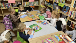 Biblioteka przy Szkole Podstawowej w Szymonkowie gościła dziś najmłodszych czytelników. Podczas tej wyjątkowej wizyty przedszkolaki miały okazję poznać fascynujący świat książek oraz dowiedzieć się, jak mogą korzystać z zasobów bibliotecznych.
