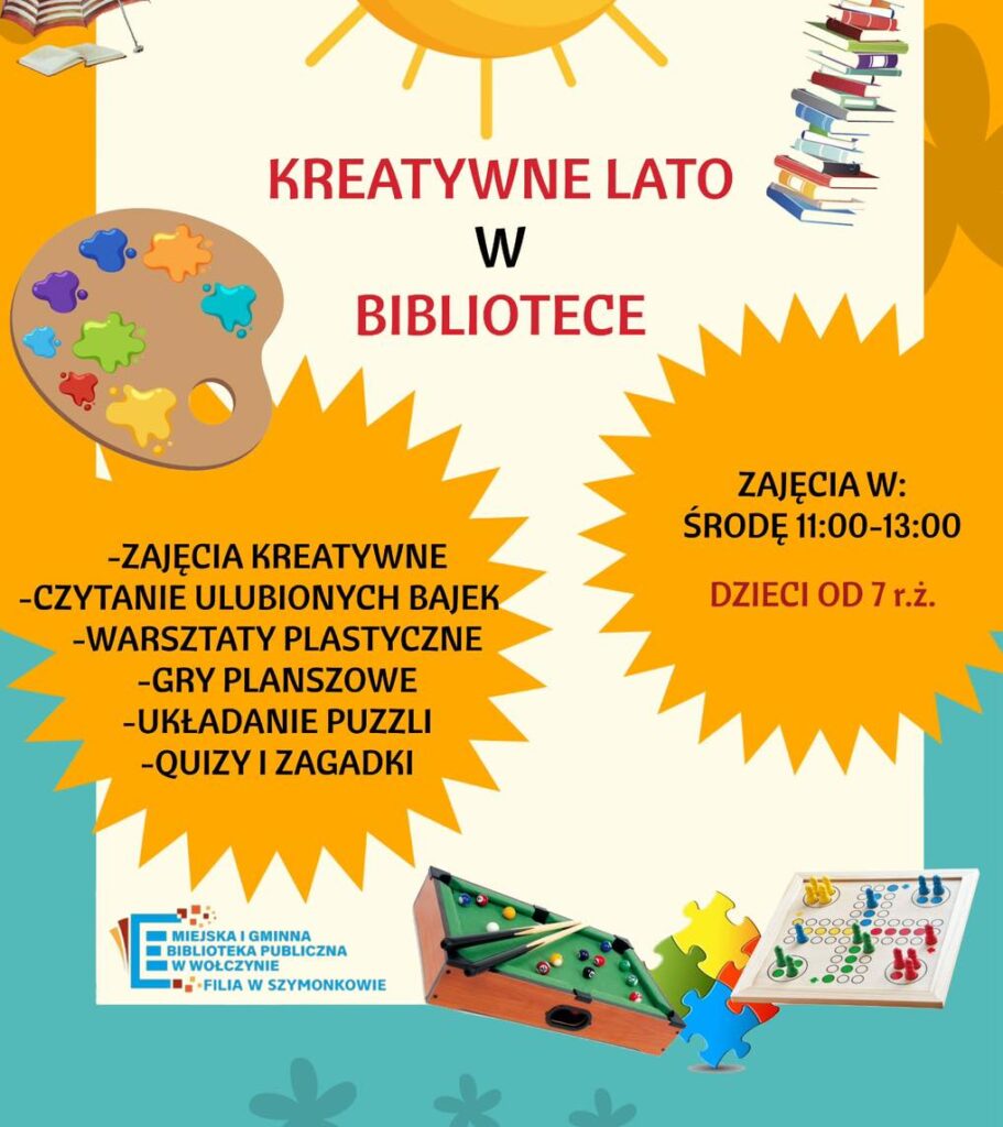 Serdecznie zapraszamy dzieci na wakacyjne zajęcia artystyczne do biblioteki w Szymonkowie! Będziemy wspólnie tworzyć kolorowe prace plastyczne oraz czytać książeczki ulubionych bohaterów.