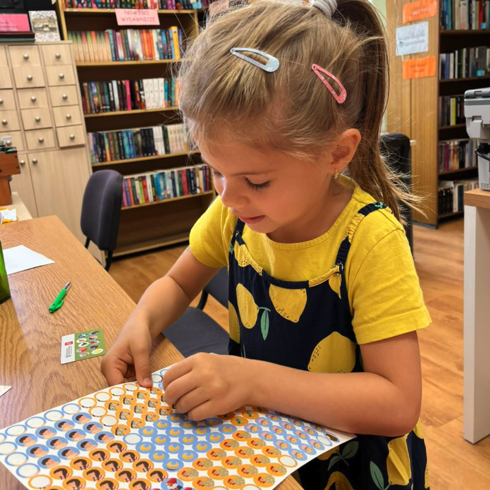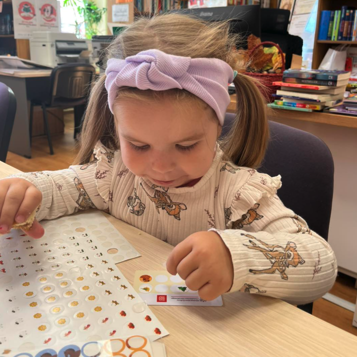 Za każde wypożyczenie minimum jednej książki Mały Czytelnik otrzymuje naklejkę, która stanowi symboliczny gest docenienia ich zaangażowania. Ta prosta, a zarazem skuteczna metoda zachęca najmłodszych do regularnych odwiedzin i poznawania nowych historii.